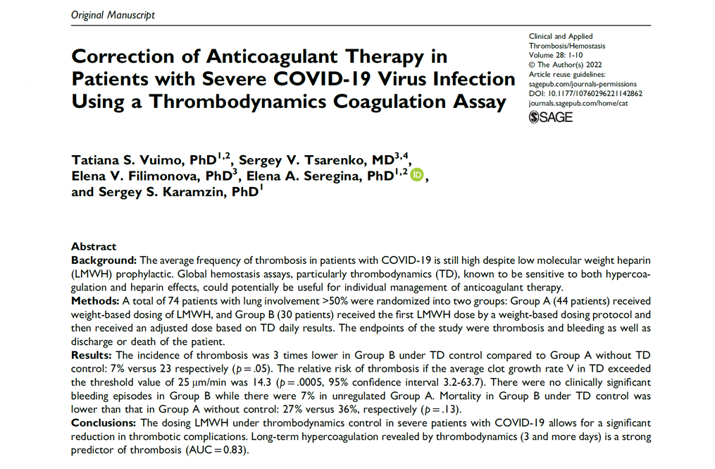 В журнале Кремлевская медицина. Клинический вестник, номер 3 за 2021, год вышла публикация с новыми данными по Тромбодинамике.
